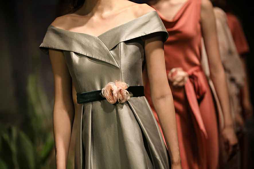 欧柏兰奴秀场新品不仅仅是时尚和潮流,更是一种设计态度,是用新的角度去探寻新视野下的审美哲学。汲取2019流行色中莫兰迪高级色系,营造柔美浪漫的艺术风格,运用印花,蕾丝、丝缎等精致面料,钉珠镶嵌、羽翼刺绣、立体花朵等工艺,展现现代女性臻美优雅的完美蜕变。